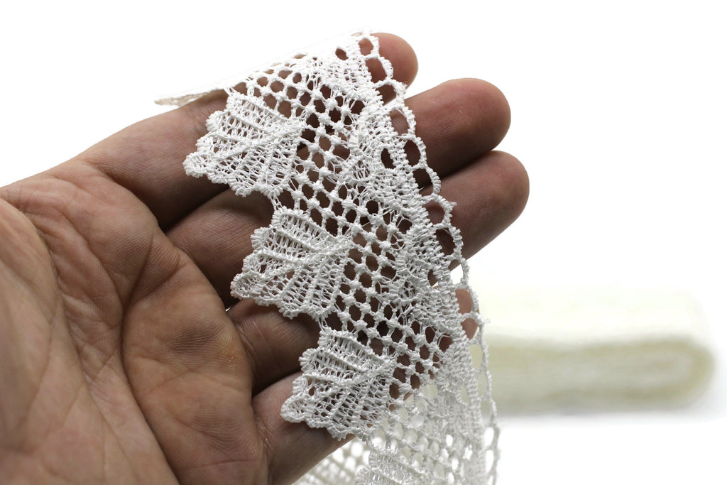 Choose Your 40mm 8 Meters White Bridal Guipure Lace Trim | 1.57 Inches Wide Lace Trim with Leaves | Bridal Lace Guipure | Lace Fabric