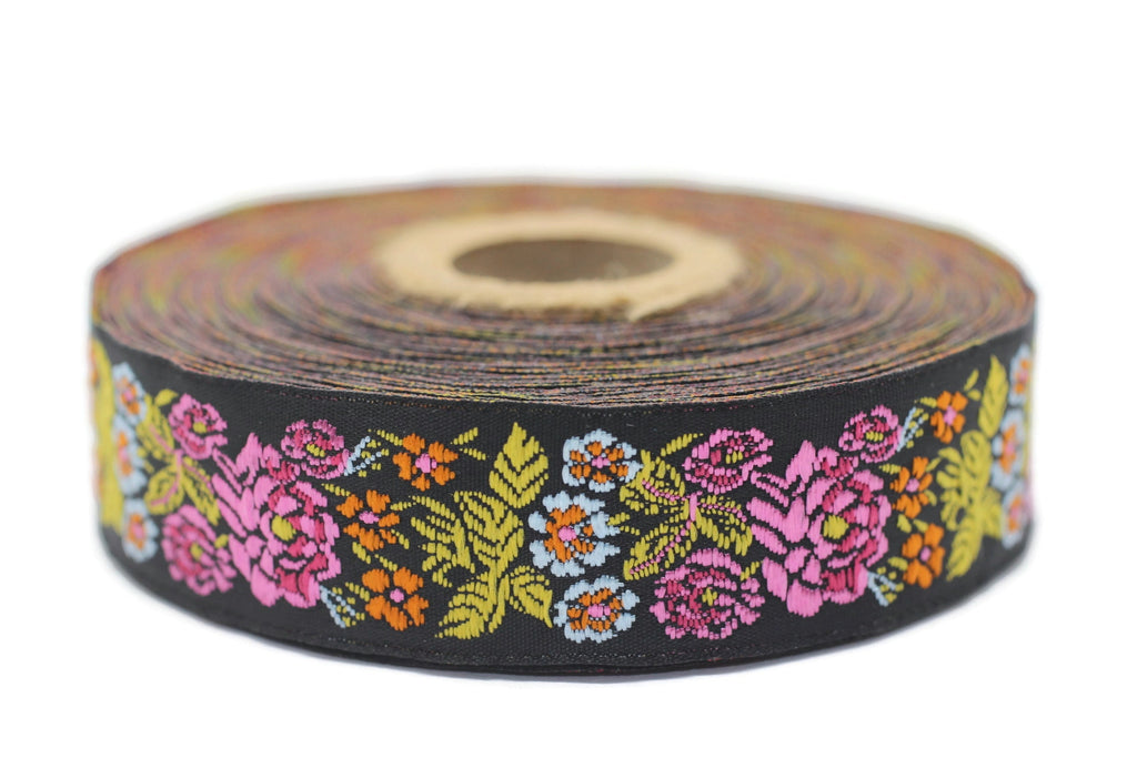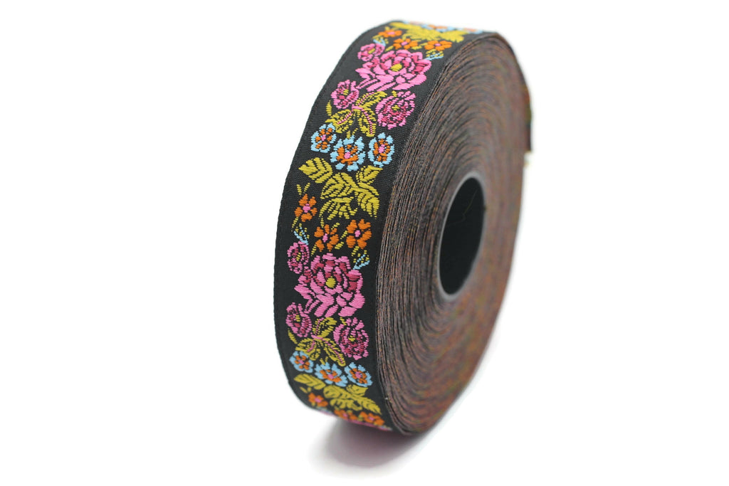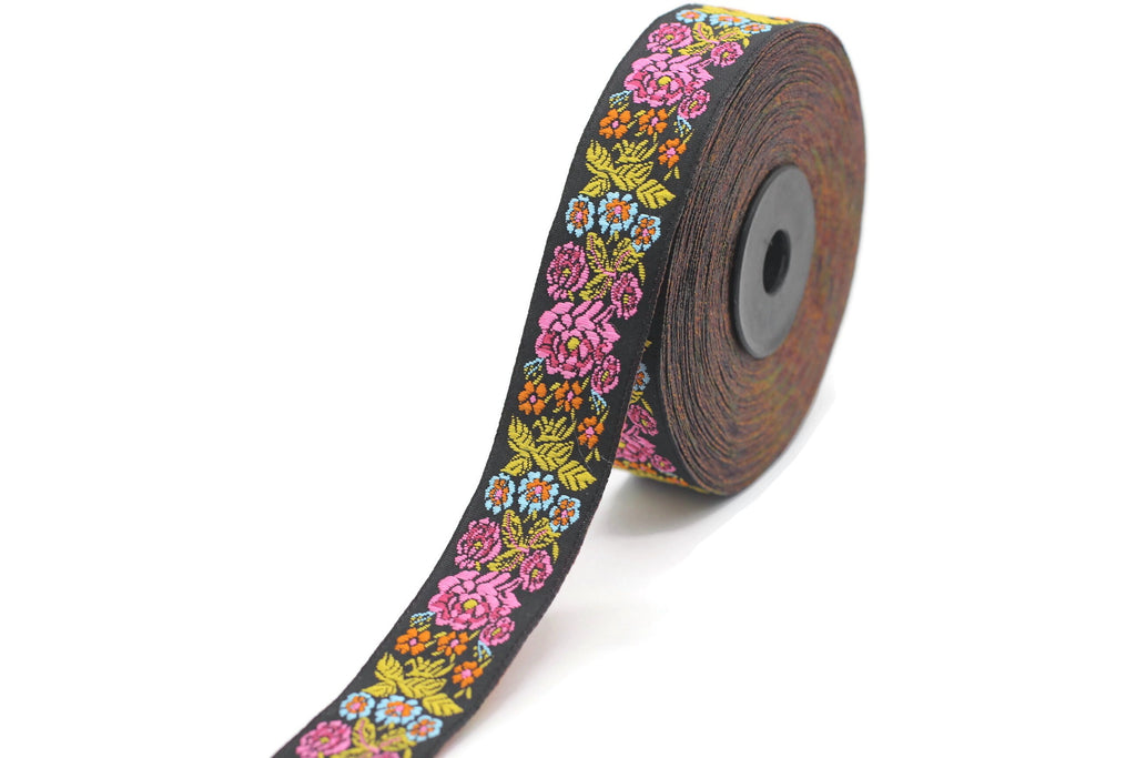 22 mm colorful Floral Embroidered ribbon (0.86 inches), Vintage Jacquard, Floral ribbon, Sewing trim, Jacquard trim, Jacquard ribbon, 22097