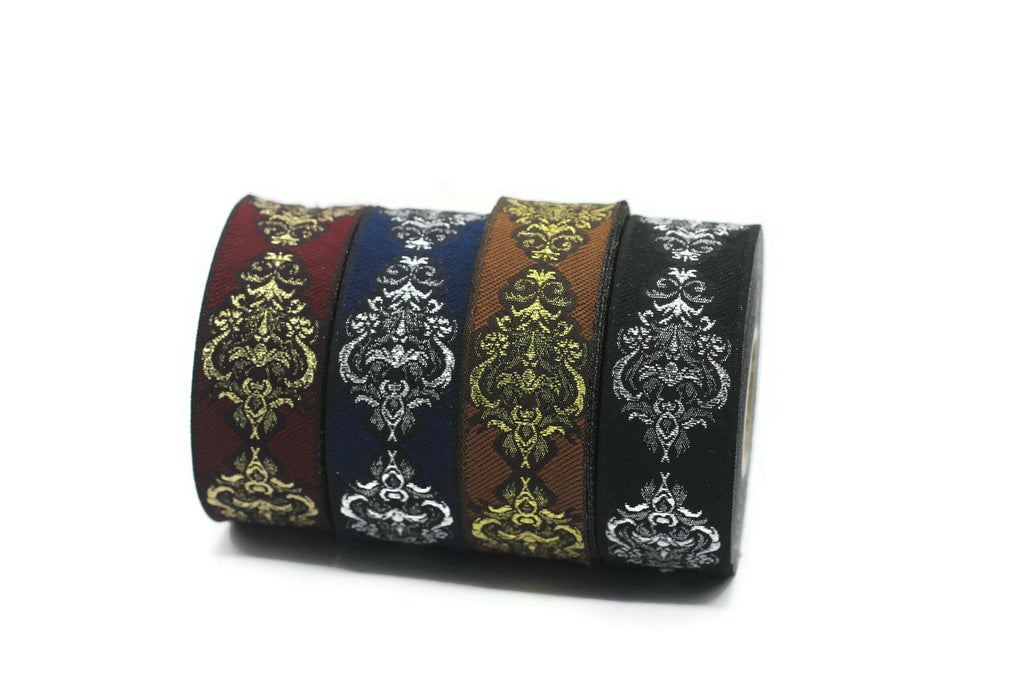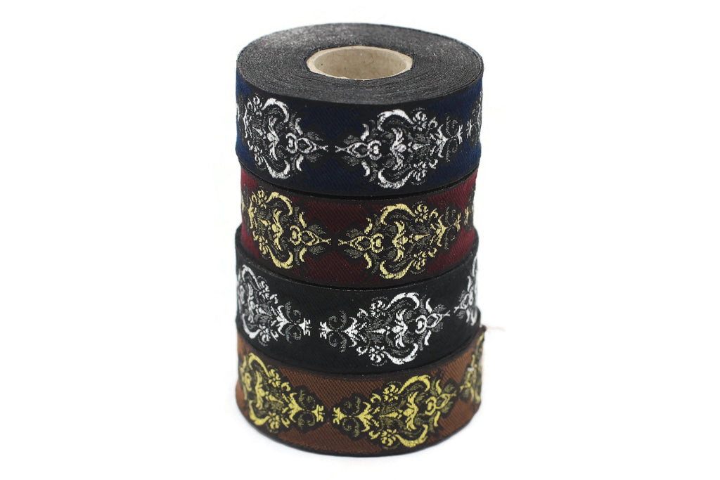 25 mm Black Authentic Jacquard Ribbons (0.98 inches) Sewing Crafts, ribbon trim, jacquard trim, craft supplies, collar supply, trim, 25918