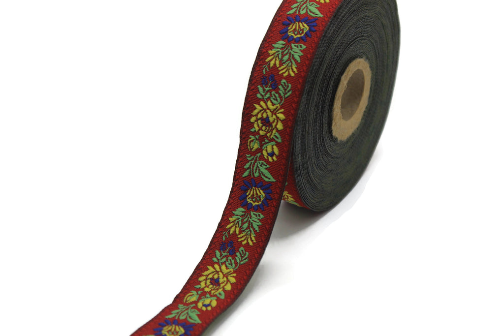 22 mm Floral Red Embroidered ribbon (0.86 inches), Vintage Jacquard, Floral ribbon, Floral trim, woven jacquard, jacquard ribbons, 22303