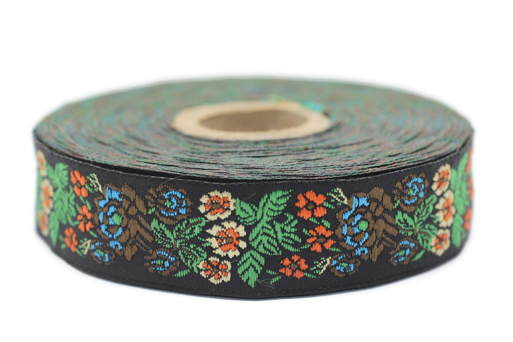 22 mm Green Floral Embroidered ribbon (0.86 inches), Vintage Jacquard, Floral ribbon, Sewing trim, Jacquard trim, Jacquard ribbon, 22097