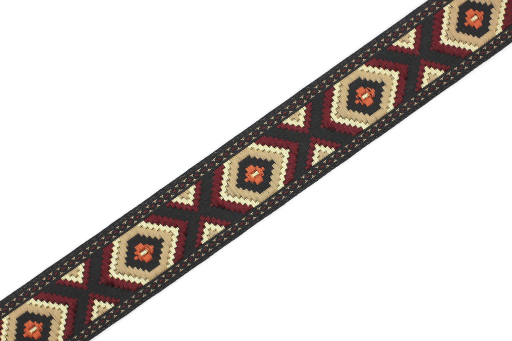 25 mm Brown / Claret red Jacquard trim (0.98 inches), vintage Ribbon,  Decorative Craft Ribbon, Sewing trim, Jacquard ribbon, 25952
