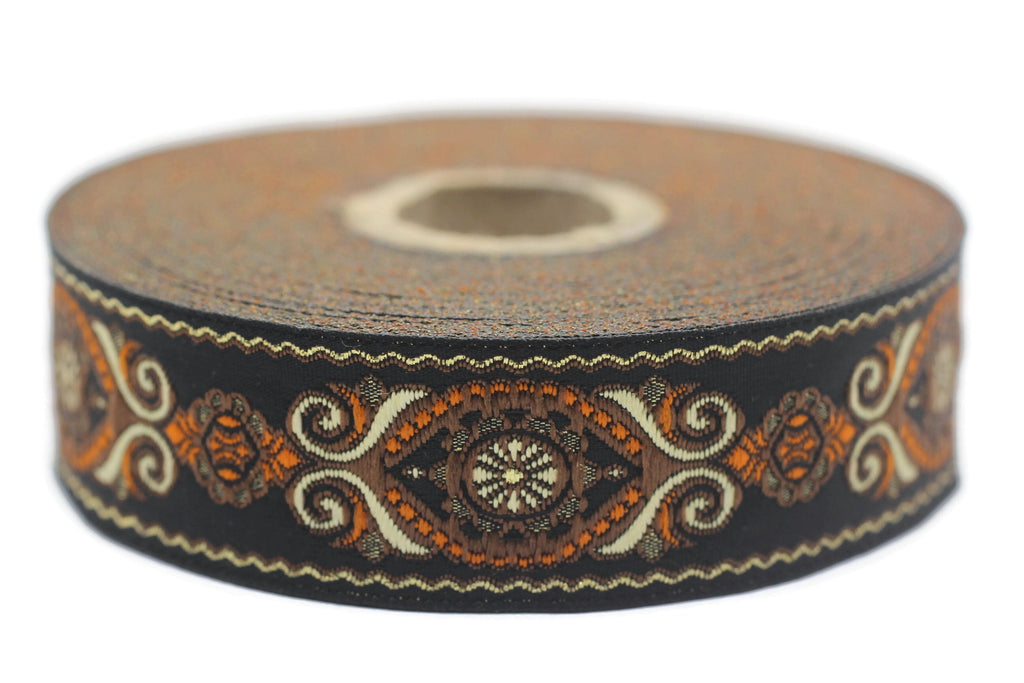 25 mm Brown Black Jacquard trims (0.98 inches), jacquard ribbons, Decorative Craft Ribbon, Sewing trim, woven trim, Vintage ribbon, 25950