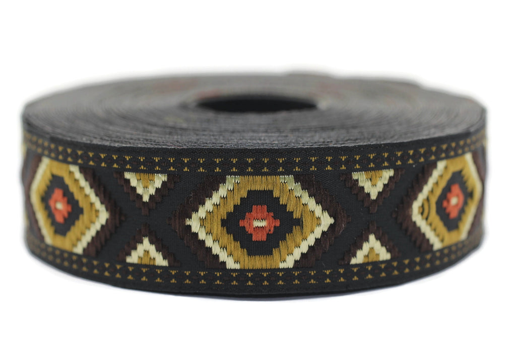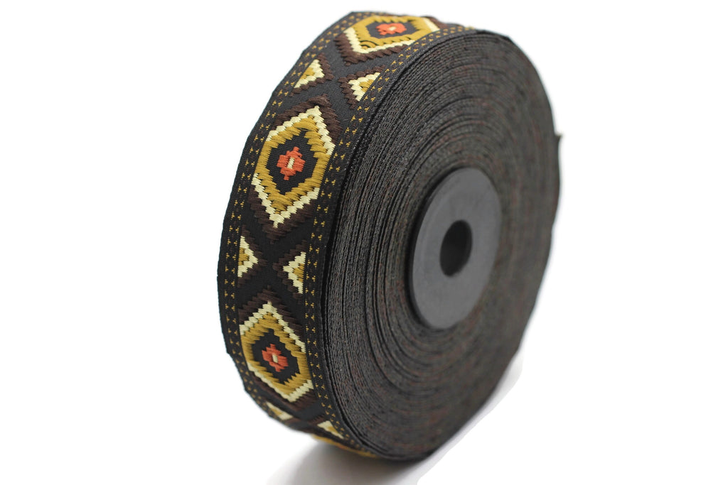 25 mm Dark Brown Jacquard trim (0.98 inches), vintage Ribbon, Decorative Craft Ribbon, Sewing Trim, Jacquard ribbon, 25952