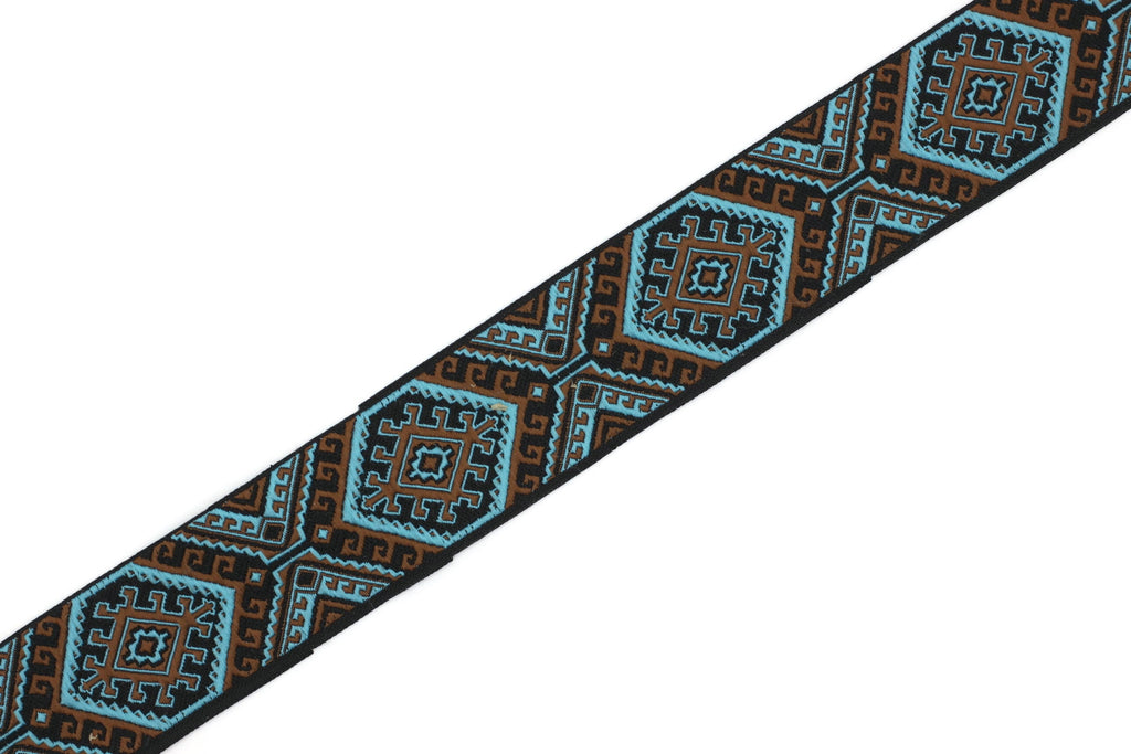 25mm Blue/Brown embroidered ribbon, Jacquard ribbon, Decorative ribbon, Craft Ribbon, Jacquard trim, costume ribbon, sewing trim 25708