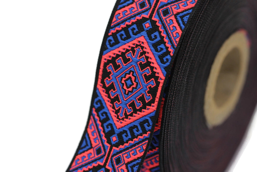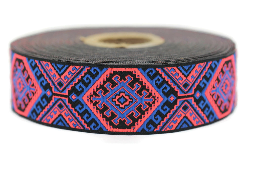 25mm Blue/Pink embroidered ribbon, Jacquard ribbon, 0.98 Decorative ribbon, Craft Ribbon, Jacquard trim, costume ribbon, sewing trim, 25708