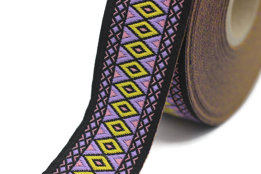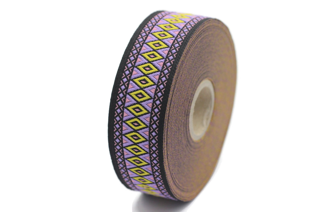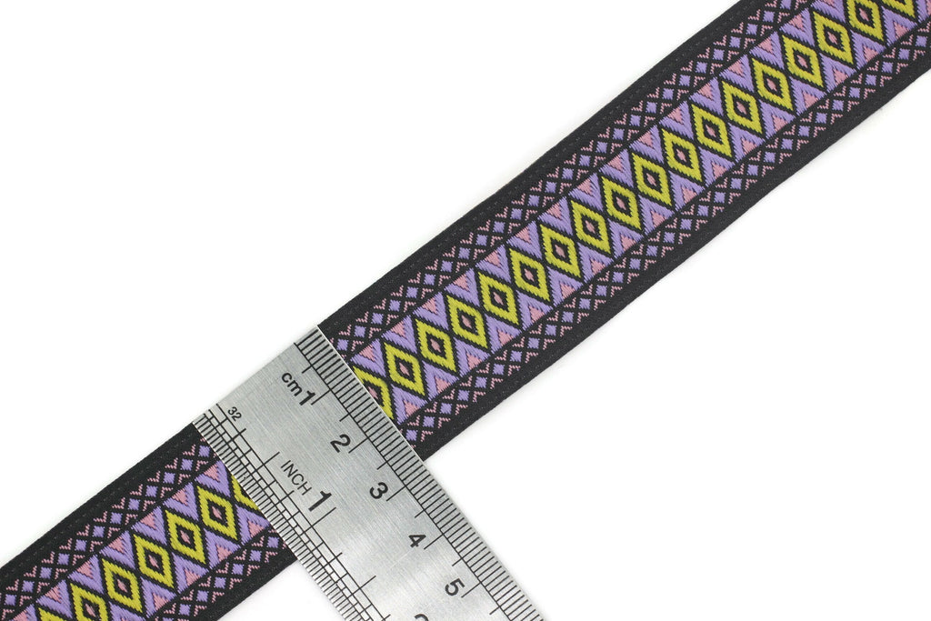 28 mm Purple Yellow Diamond Jacquard ribbon (1.10 inches), Diamond ribbon, dog colar ribbons, Sewing, Jacquard ribbon, Trim, Ribbon, 28119