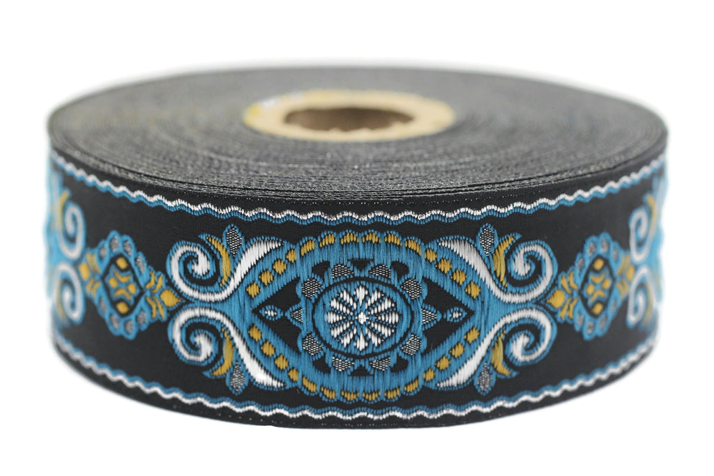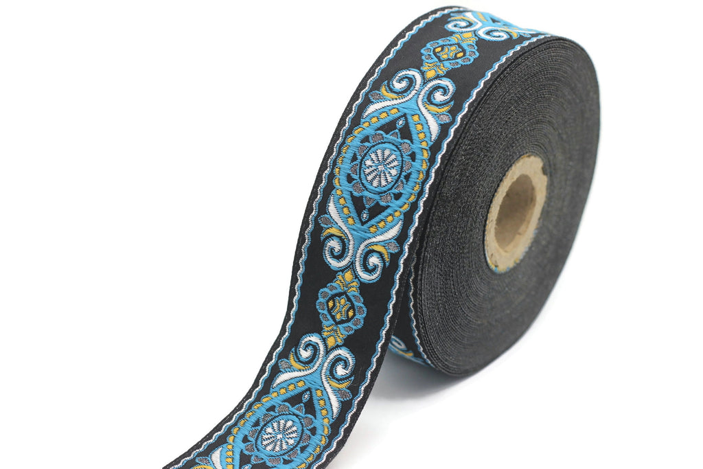 35 mm Blue&Black Jacquard ribbon (1.37 inches), jacquard, Decorative Craft Ribbon, Sewing trim, woven trim, embroidered ribbon, 35950