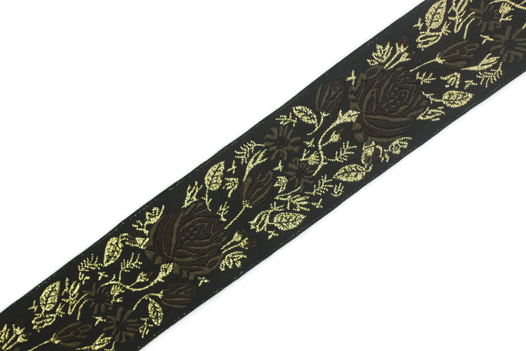 35 mm Brown / Black Floral Jacquard trim (1.37 inches), Rose emboried Ribbon, Decorative Craft Ribbon, Jacquard Ribbon Trim, 35089