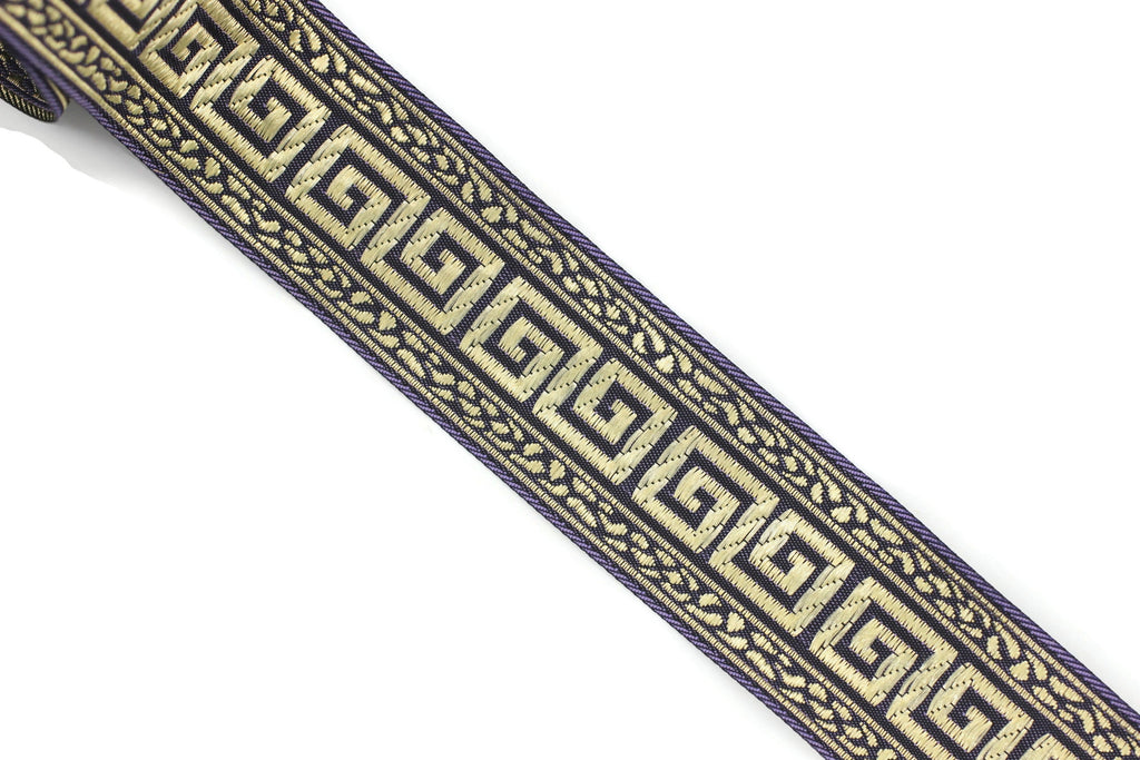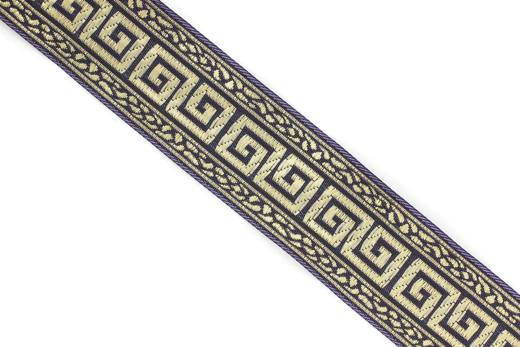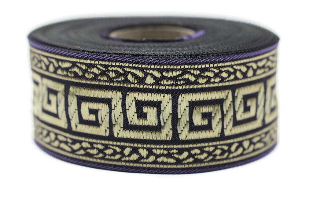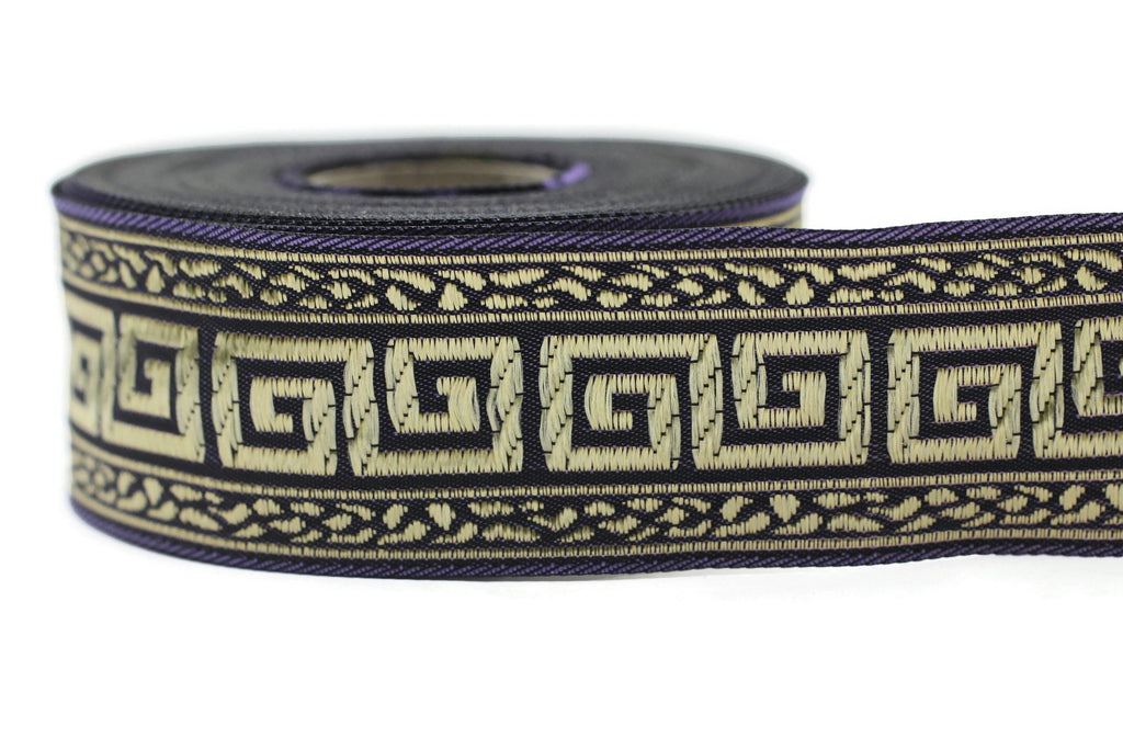 35 mm Lilac/Gold Greek Key ribbons (1.37 inches), ribbon trims, jacquard ribbons, fabric ribbons, vintage trim, geometric ribbons, 35060