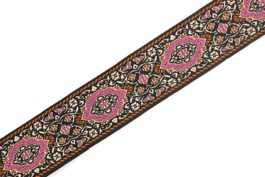 35 mm Pink Medieval Motive Woven Border (1.37 inches), jacquard ribbon, Embroidered ribbon, Sewing trim, Scroll Jacquard trim, 35589
