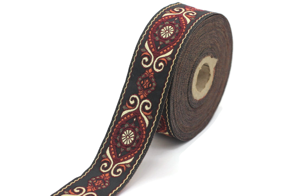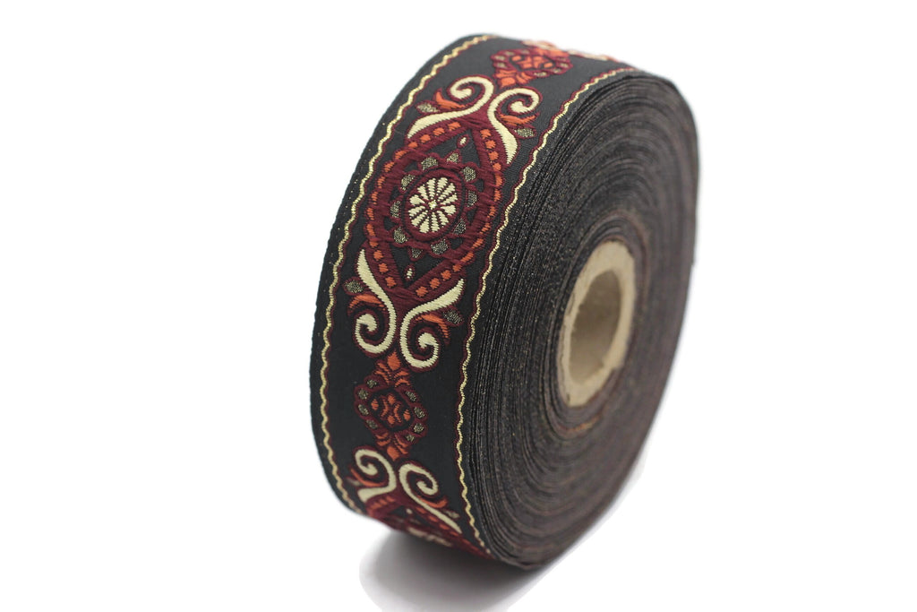 35 mm Red&Black Jacquard trims (1.37 inches), Jacquard Ribbons, Decorative Craft Ribbon, Sewing trim, woven trim, Vintage ribbon, 35950