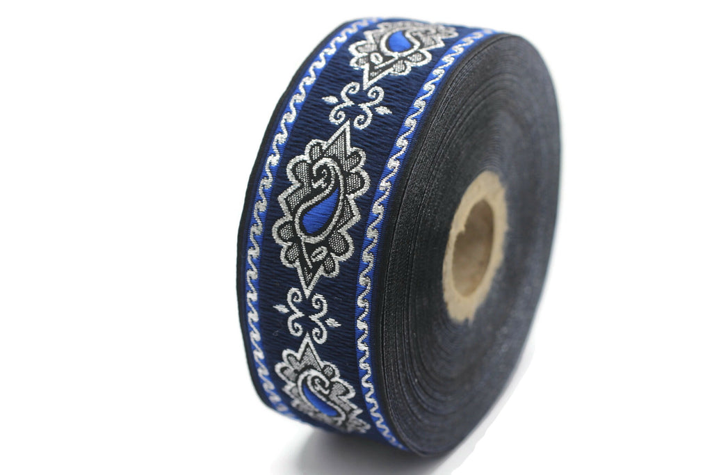 35 mm Royal Blue medieval ribbon (1.37 inches), renaissance trim, otantic ribbon, jacquard ribbons, fabric ribbon, vintage trim, 35907
