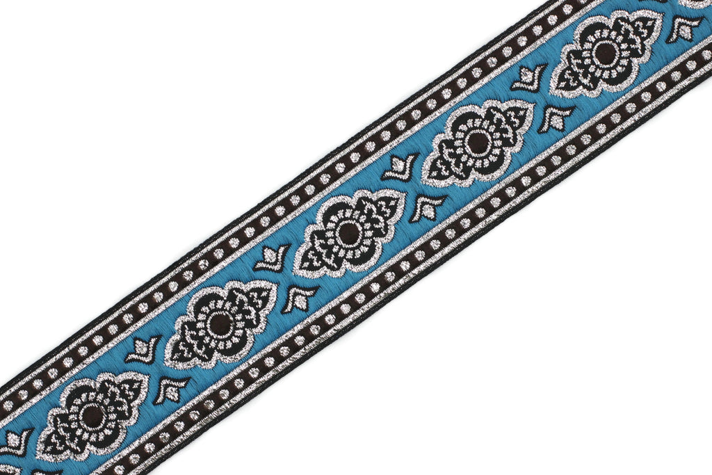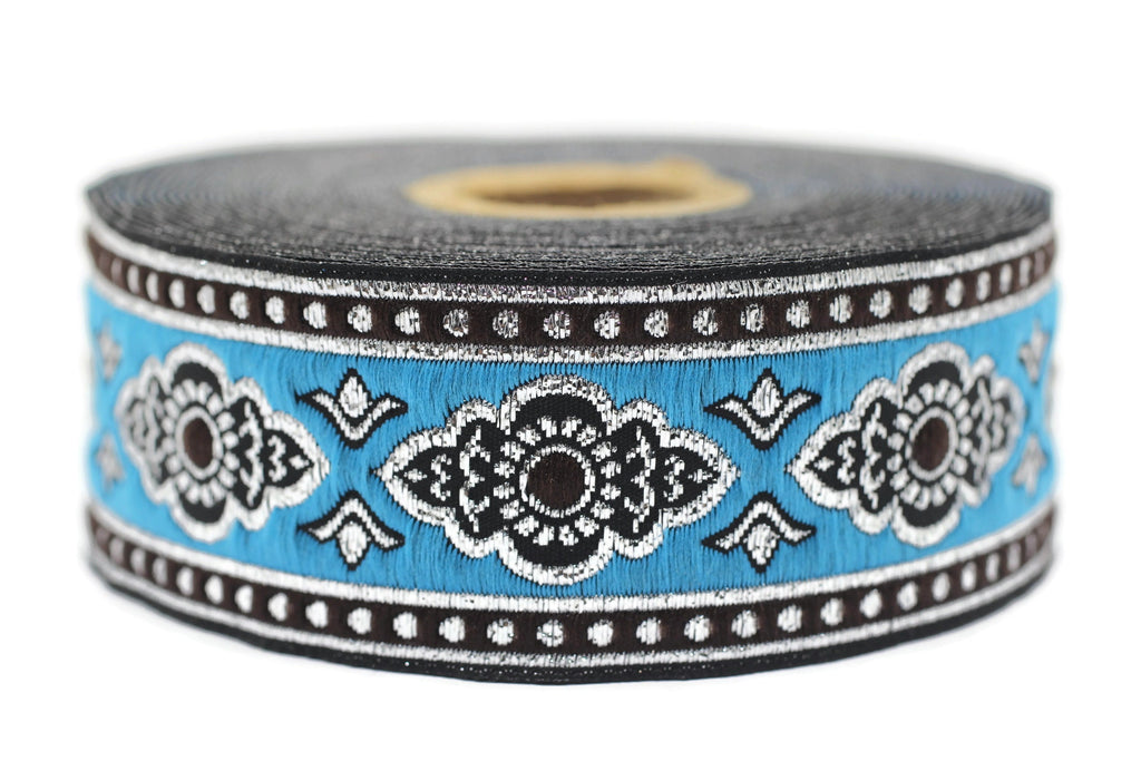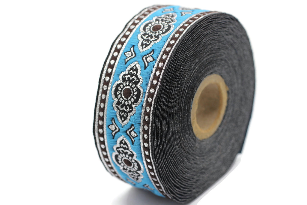 35 mm Sky Blue ribbon, dog colar ribbons, Sewing, decorative ribbon, french trim, embroidered ribbon, vintage ribbon, woven jacquard, 35905