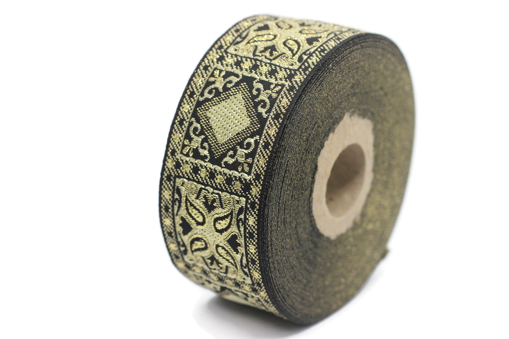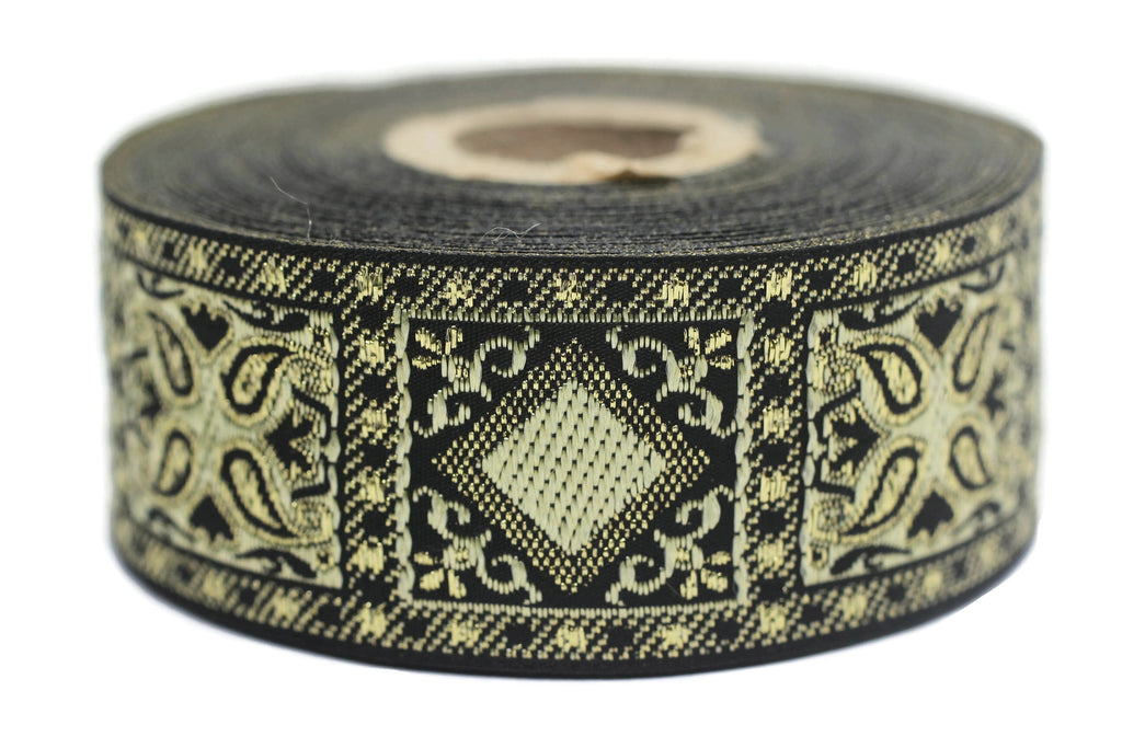 35 mm Yellow Geometric Jacquard trim (1.37 inches), vintage Ribbon, Decorative Craft Ribbon, Sewing, Jacquard ribbon, Trim, 35587