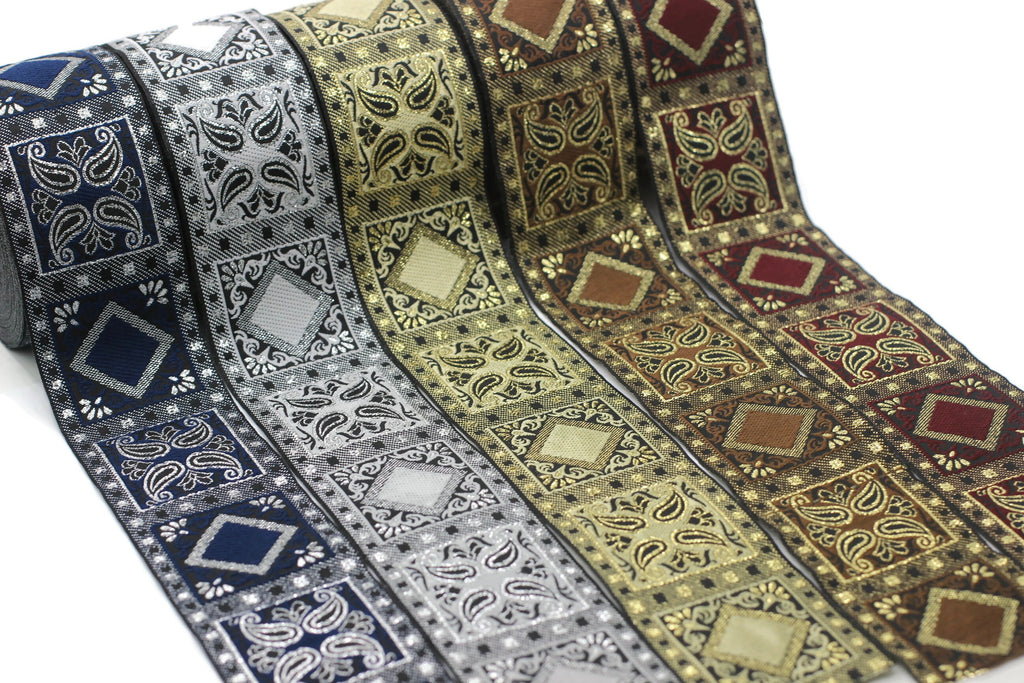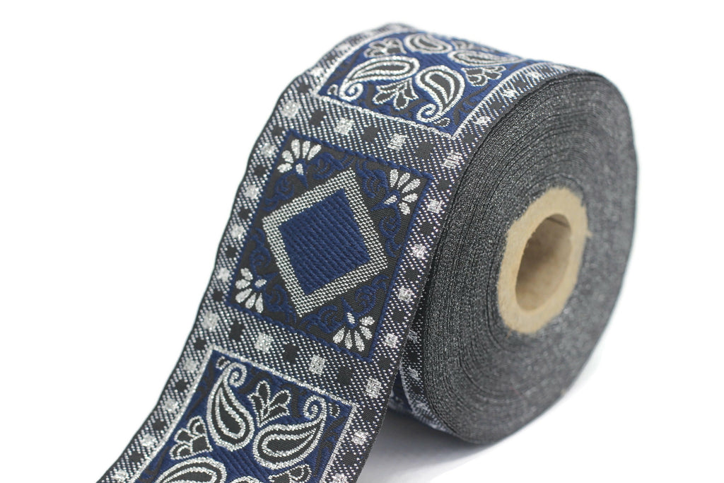 50 mm Blue/Silver Geometric Jacquard trim (1.96 inches), vintage Ribbon, Decorative Craft Ribbon, Sewing, Jacquard ribbon, Trim, 50587