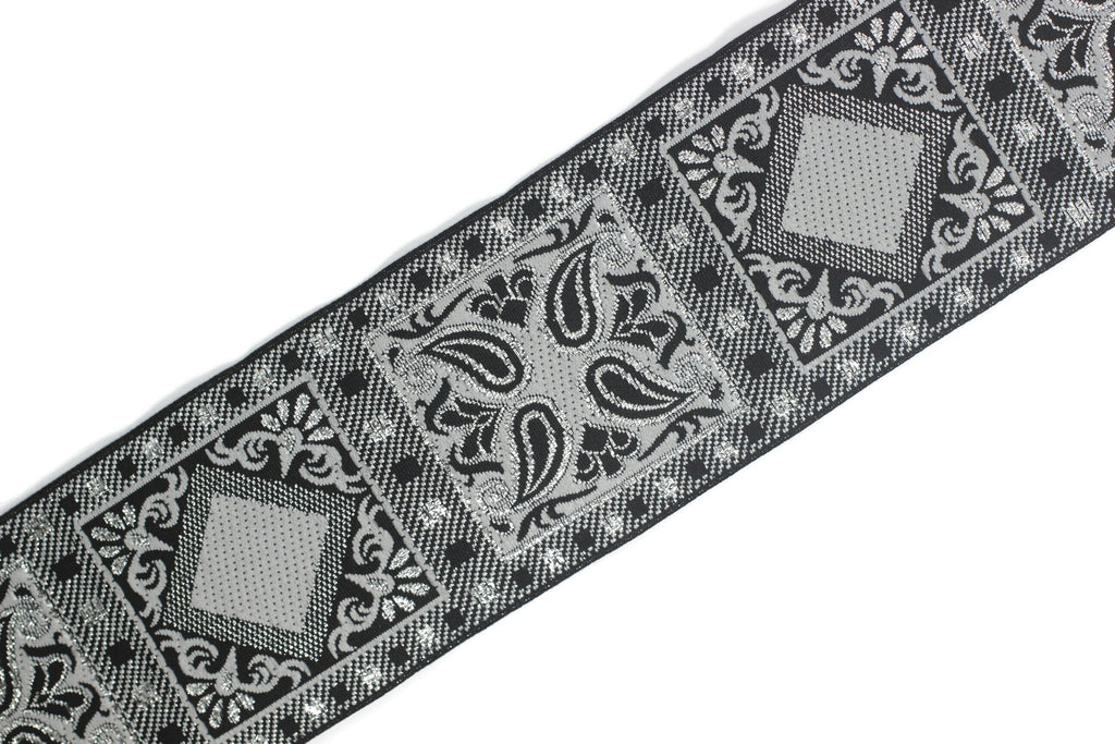 50 mm Grey Geometric Jacquard trim (1.96 inches), vintage Ribbon, Decorative Craft Ribbon, Sewing, Jacquard ribbon, Trim, 50587