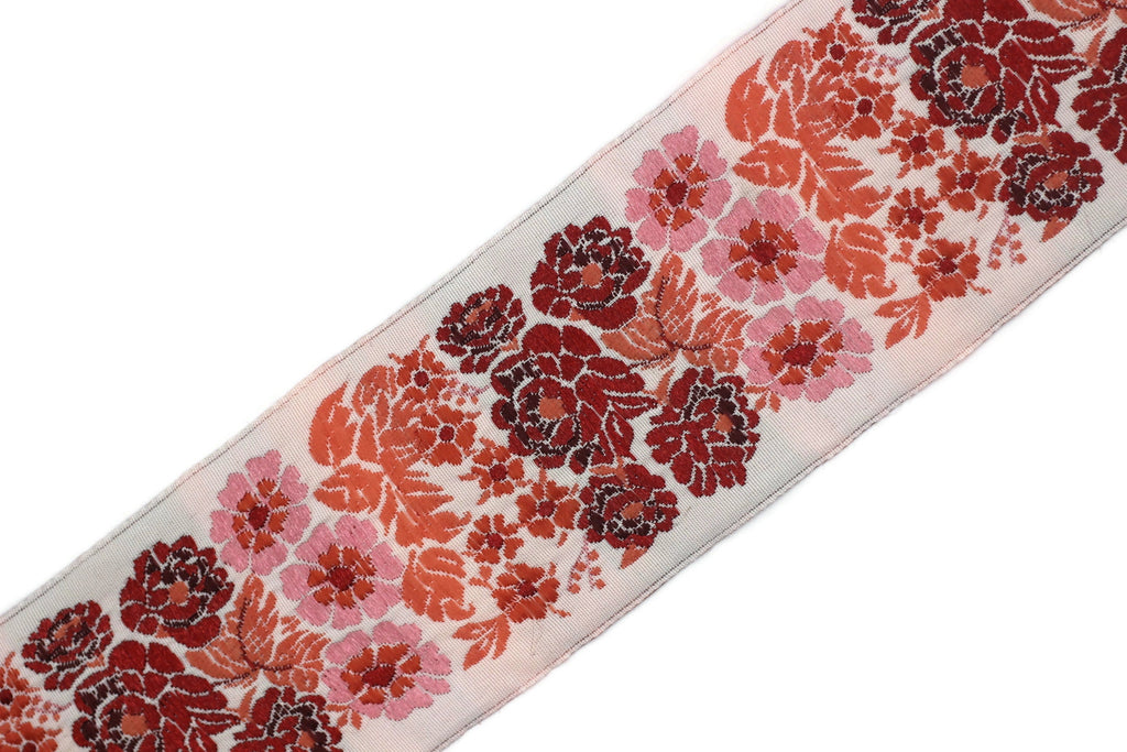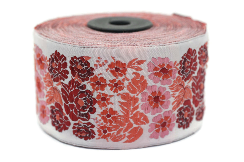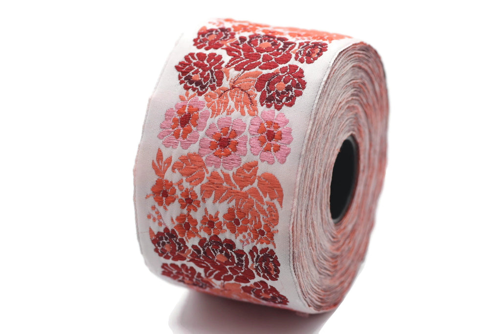 50 mm Red Floral Embroidered Ribbon Sewing Trim Craft Ribbon Jacquard Trim, Woven Trim Border 50097