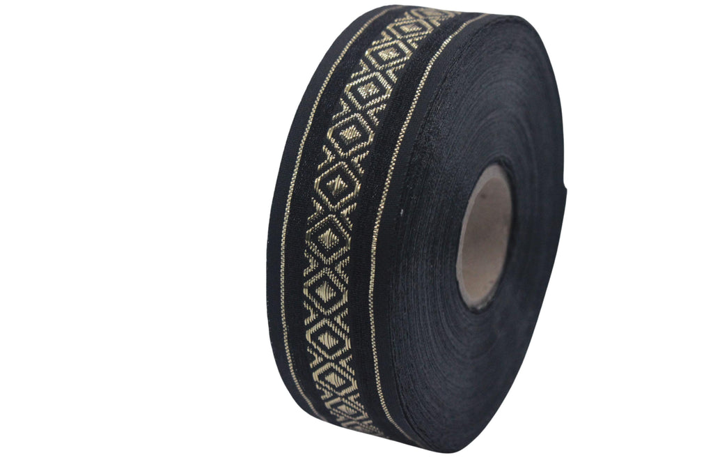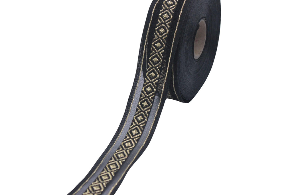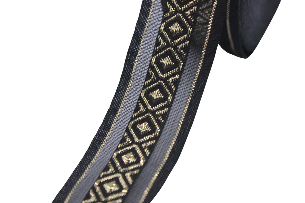 1.02" Gold&Black Mosaic Jacquard Ribbon Trim (26 mm), Woven Border, Upholstery Fabric, Webbing Trim Costume Design 26334