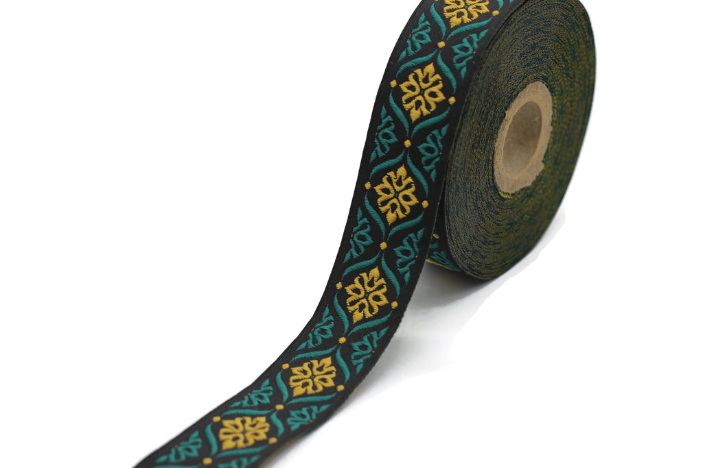 25 mm Green Yellow Mediterranean Ribbon (0.98 inches), Jacquard ribbons, jacquard trim, fabric wide trims, craft supplies, trim, 25973