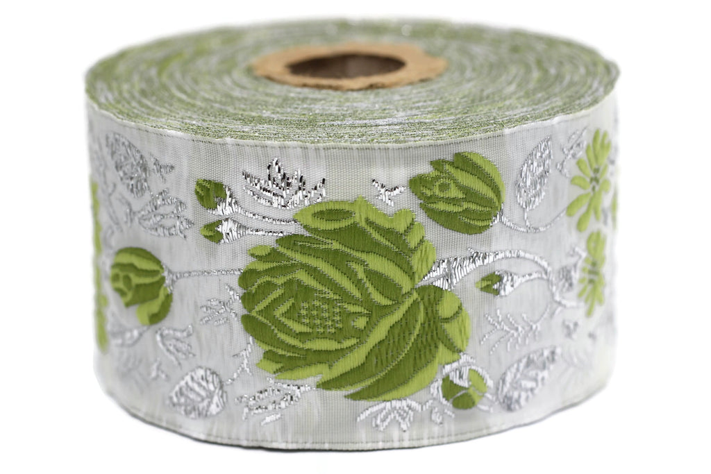 50 mm Floral Jacquard trim (1.96 inches), Rose emboried Ribbon, Decorative Craft Ribbon, Jacquard Ribbon Trim, 50089