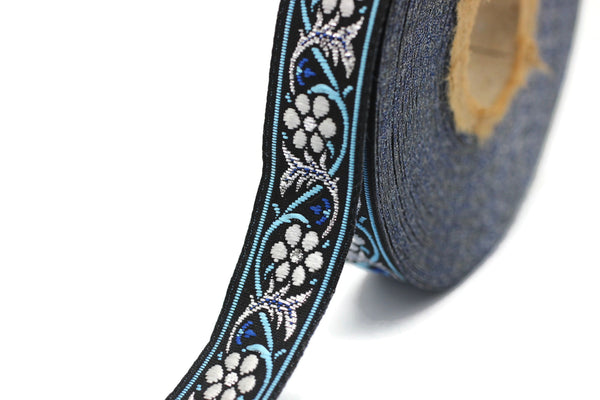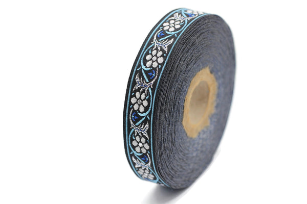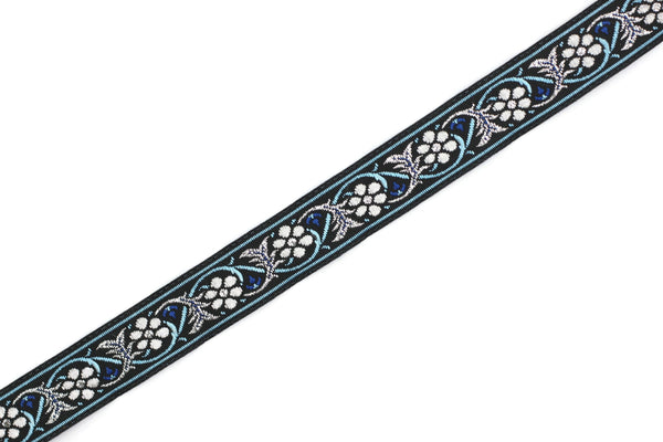 16 mm Bavarian spring time floral Blue Jacquard trim (0.62 inch), floral ribbon, Tapes, Band, Jacquard ribbons, Ruban, French Ribbon, 16904