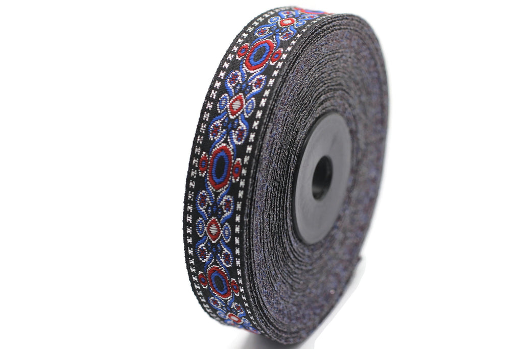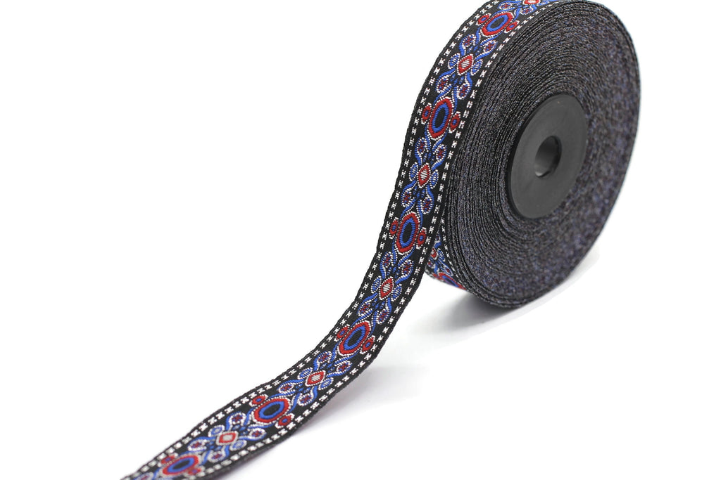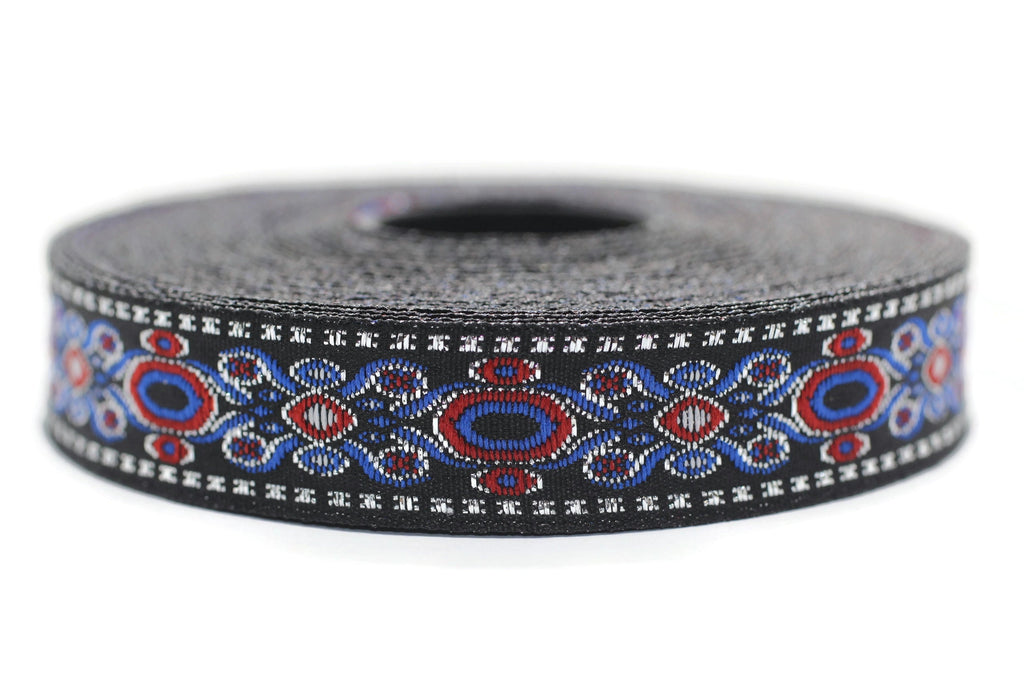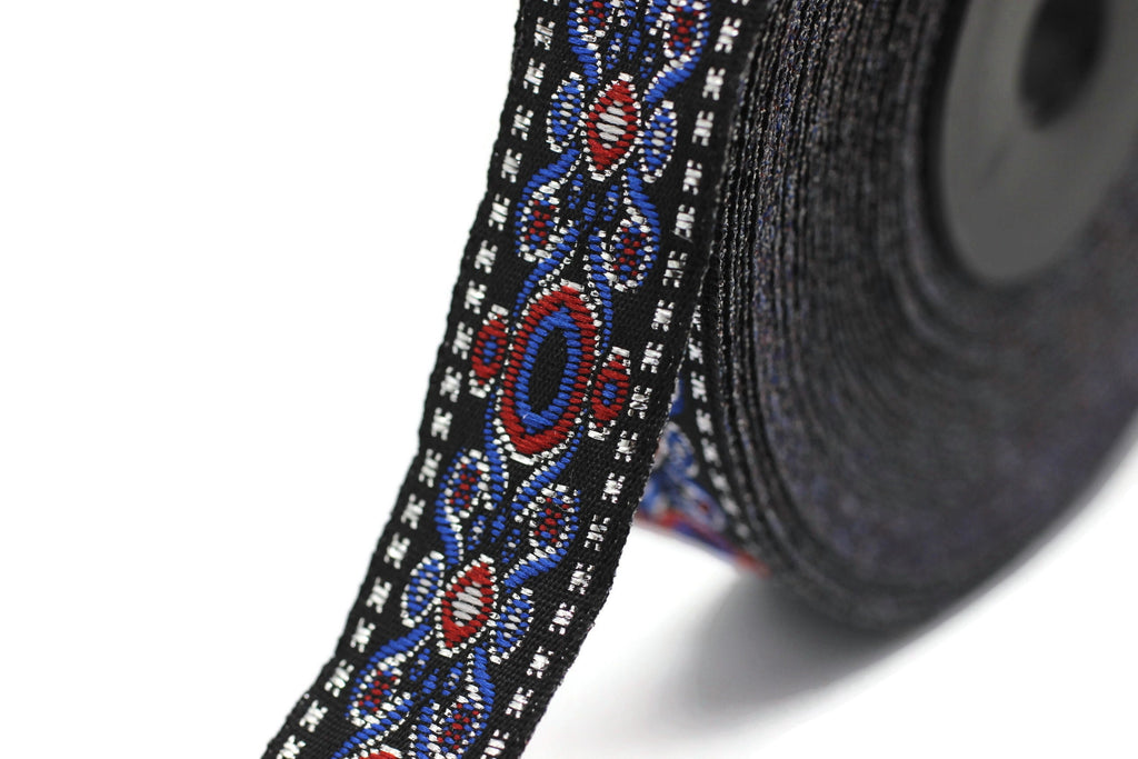16 mm Dark Blue Jacquard trims 0.62 inches, medieval embroidered trim, medieval ribbon, woven ribbon, woven jacquard, sewing trim