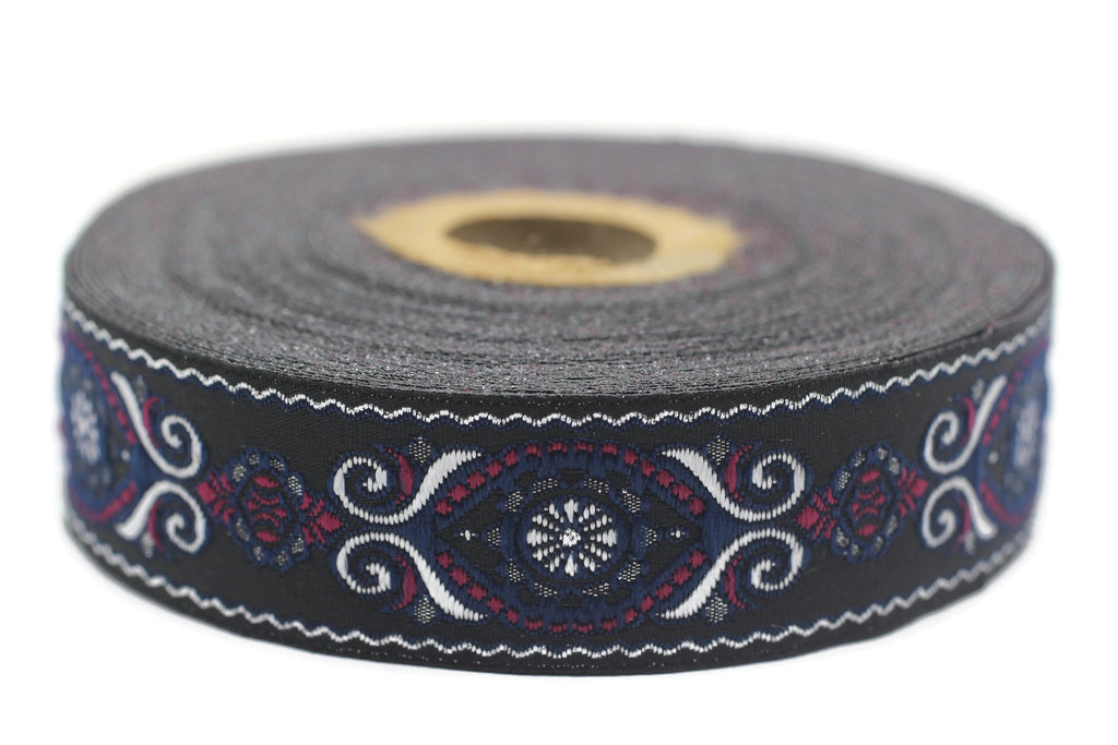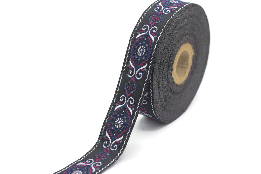 25 mm Blue Pink Jacquard trims (0.98 inches), jacquard ribbon, Decorative Craft Ribbon, Sewing trim, woven trim, embroidered ribbon, 25950
