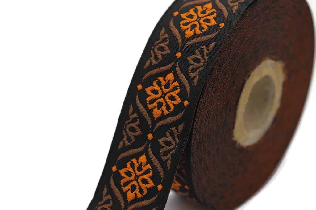 25 mm Brown Orange Mediterranean Ribbon (0.98 inch), Jacquard ribbons, jacquard trim, fabric wide trims, craft supplies, vintage trim, 25973