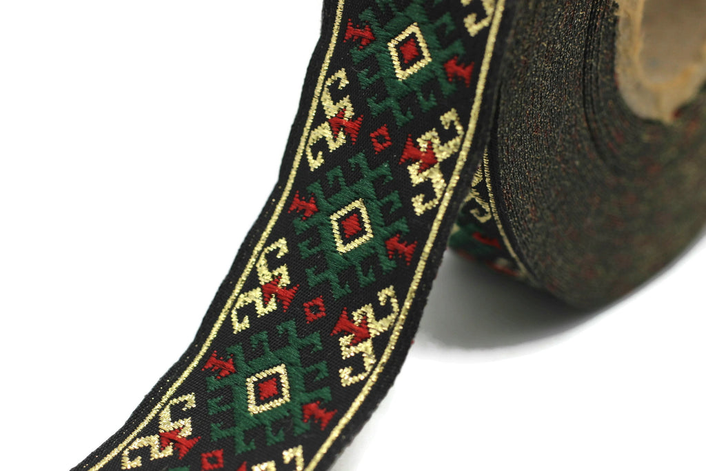 25 mm Green/gold Snowy Jacquard trim (0.98 inches), vintage Ribbon, Decorative Craft Ribbon, Sewing, Jacquard ribbon, Trim, ribbon, 25953